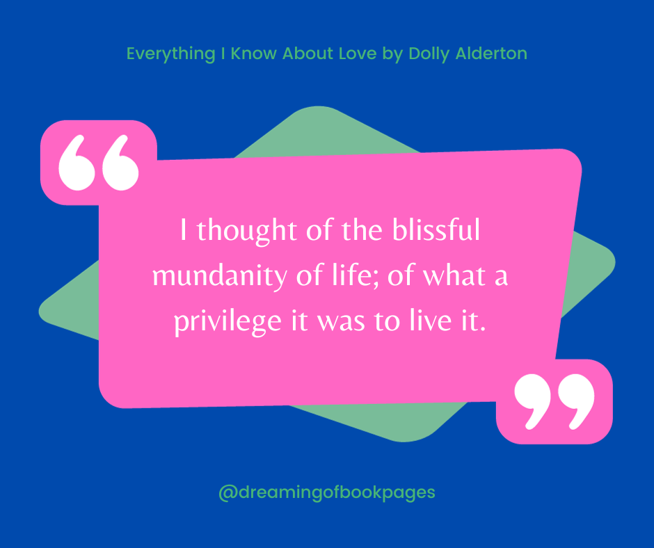 Reading this felt so familiar, Alderton and I clearly suffer from the same level of deep nostalgia. Many chapters left me feeling wholly seen and understood, had me laughing out loud manically and tearing up silently. I really enjoyed the exploration of “change”. The change that comes with settling into adulthood – the changes in friendships, in priorities, in relationships. The struggle that comes with navigating those changes and the adjustment to a new normal of sorts.
